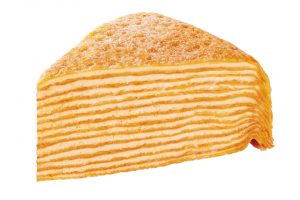 キャラメルクリームと、しっとり焼き上げたクレープ生地を重ね合わせたミルクレープです。口どけの良いキャラメルクリームに宮古島の雪塩(R)を合わせることで、上品な甘さの中にほのかな“塩味のアクセント”が生まれ、味わいをきゅっと引き締めています。さらに、キャラメルにはほんのりとしたビター感を残し、奥行きのあるバランスに仕上げました。クレープ生地とキャラメルクリームを丁寧に13層に重ねることで、なめらかな口どけと、重なる層ならではの心地よい食感が楽しめます。